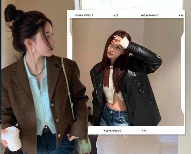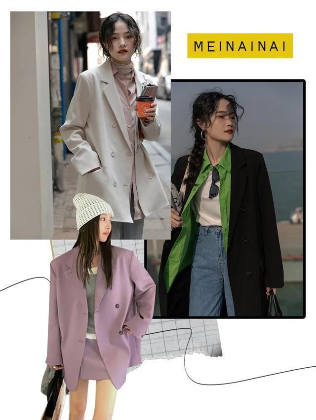 在颜色的选择上,内外可以选择颜色对比强烈些的,外浅内深或者外深内浅,会更显瘦些!