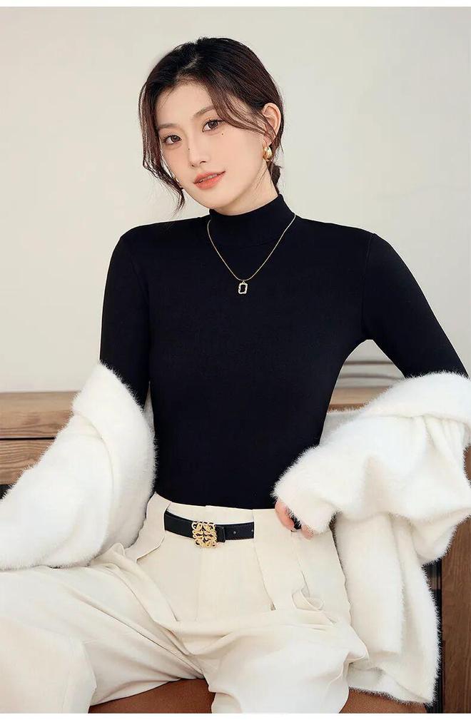而半高领设计的打底衫最为热销,不但能修饰我们的颈脖线,还能防灌风。任何衬衫、外套、大衣,任何裤子,它都能衬托出一股子简约时尚感!