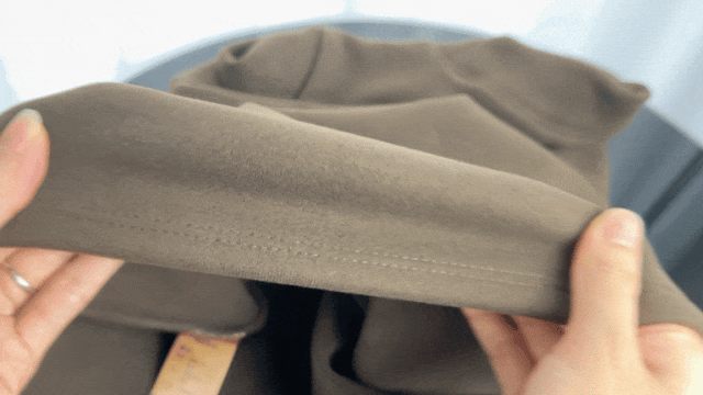仔细看打底衫的表面,上面的小绒毛厚实浓密,会形成空气层,比普通的打底衫能锁住更多热量,同时吸收身体排出的汗液。