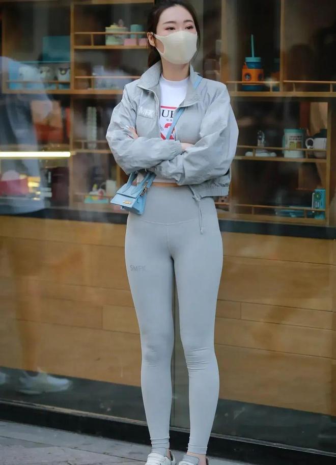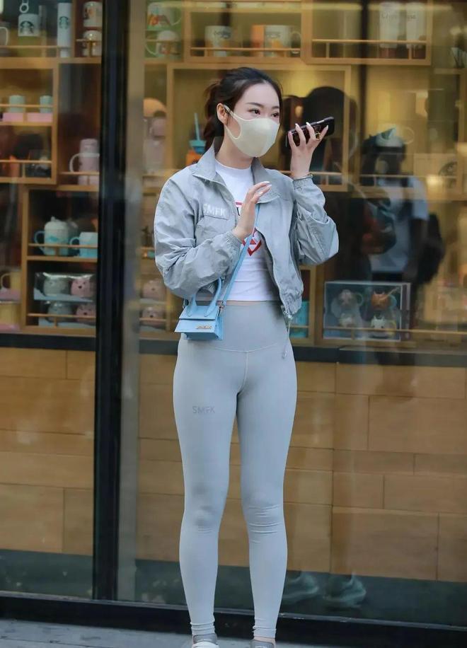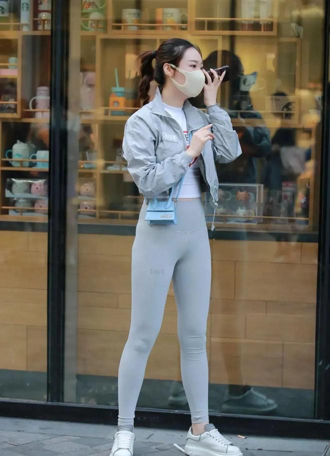 这款裤子看上去像以往的裤子一样,平平无奇。但是在设计上却打破了常规,别出心裁,穿着增加稳定性,同时打造迷人大长腿加宽高腰的设计,紧紧收住腹部赘肉,透气舒高弹又环保。立体裁剪的高腰收腹设计提臀收腹紧紧包裹住腰腹间的赘肉。采用专业吸湿排汗面料,贴身更舒适,清爽速干不闷汗。浅灰色与上身的牛仔服颜色相配,是两种颜色相融合,有不一样的时尚感。
